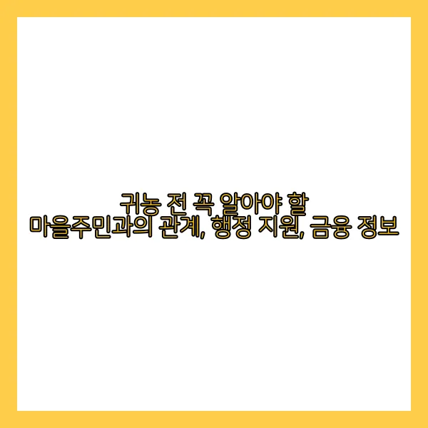 귀농 전 꼭 알아야 할 마을주민과의 관계, 행정 지원, 금융 정보