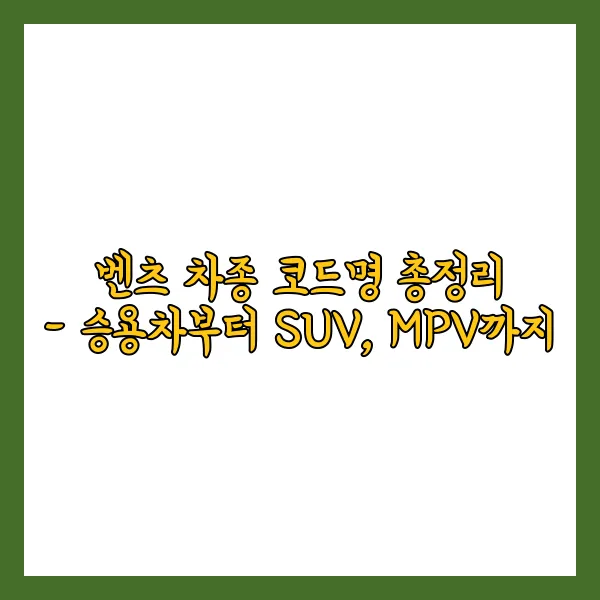 벤츠 차종 코드명 총정리 - 승용차부터 SUV, MPV까지